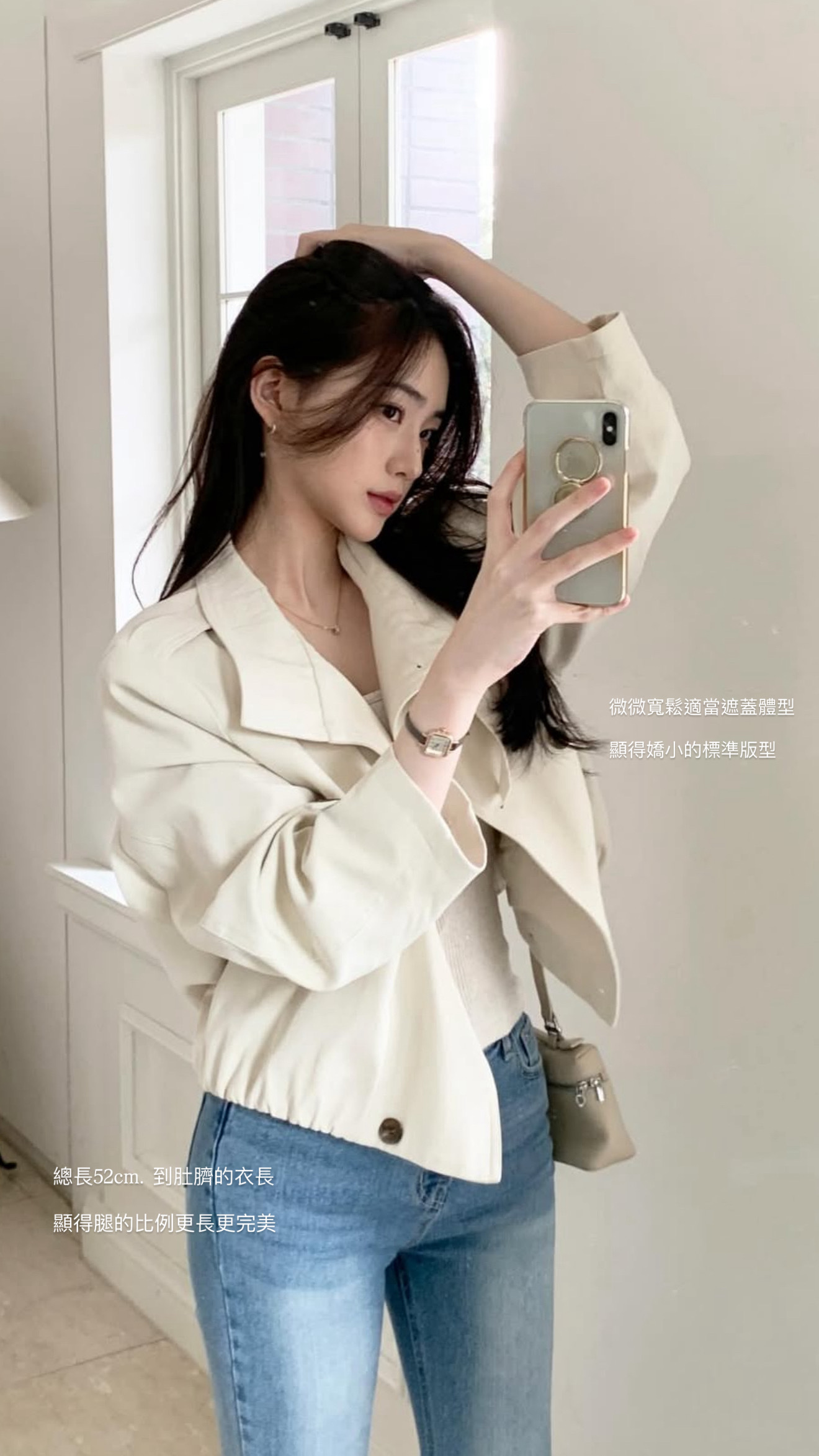 剛好落在骨盆位置的漂亮半短版長度